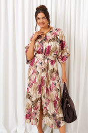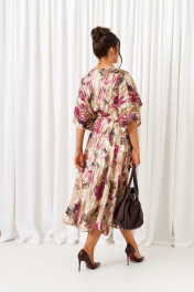 Мы представляем вашему вниманию легкое, нарядное, элегантное платье. Данная модель будет уместна для деловой встречи, а также для неформальных мероприятий разного рода. Платье женское, в нарядно-романтическом стиле; отрезное по линии талии; выполнено из лёгкой, струящейся плательной ткани. Передняя верхняя часть платья разрезная по среднему шву, в верхней части которого расположен небольшой треугольный разрез. Спинка разрезная по среднему шву, в который вставлена длинная, потайная молния. Конструкция верхней части платья выполнена в свободном стиле со спущенной линией плеча и глубокими складками на линии талии. Нижняя, передняя часть платья свободного кроя, состоит из 4-х клиньев с центральным разрезом спереди. Задняя, нижняя часть состоит из 2-х клиньев. Горловина округлой формы. Рукав цельнокроеный, объёмный, со спущенной линией плеча. В комплекте к платью прилагается широкий пояс на пряжке.