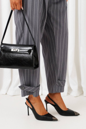 Брючный костюм из изысканного полотна в полоску идеально подходит для торжественных случаев и не только. Оба изделия можно смело комбинировать по отдельности с другими вещами Вашего гардероба. Элегантный костюм состоит из 2-х предметов одежды: жакета и брюк. Выполнен из костюмного полотна с содержанием натуральной вискозной нити классического рисунка в полоску. Жакет полуприлегающего силуэта двубортный, на подкладке. Перед с подрезом на талии, с функциональным боковым карманом с клапаном от него. Слева вверху расположена листочка. Спинка со средним швом и с вертикальными рельефами от проймы. Рукав двухшовный втачной длинный. Воротник стояче-отложной пиджачного типа с лацканами. Застежка смещенная на видимые прорезные петли и пуговицы, а также на дополнительную потайную петлю с пуговицей. Низ борта ровный. Брюки свободные, расширенного силуэта вверху и слегка зауженные к низу. С верхними наклонными глубокими складками и с двумя верхними боковыми карманами. Низ брюк оформлен декоративными патами с пуговицей. Высота сиденья стандартная. Застежка центральная на молнию и на петлю с пуговицей на поясе. Брюки на притачном поясе, в задней части которого для удобного прилегания по талии вставлена резинка. Длина жакета (по среднему шву спинки) ~ 65,5 см. Длина рукава жакета ~ 62 см. Длина брюк (с поясом) ~ 96 см.