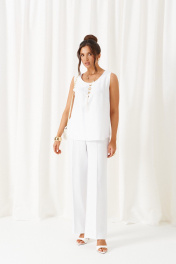 топ, брюки – лен 80%; вискоза 20% блузка –вискоза 87%; нейлон 13%
