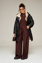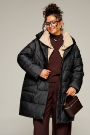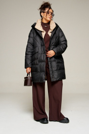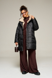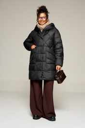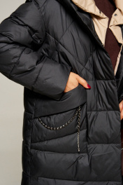 Это пальто станет акцентным элементом вашего гардероба. Современный объёмный крой и спущенная линия плеч создают расслабленный актуальный силуэт. А широкий воротник играет роль дизайнерского акцента. Пальто выполнено из прочной, влагостойкой и приятной на ощупь полиэстерной ткани; на синтетической подкладке. Утеплитель холлофайбер 200 г/м. кв. предназначен для использования изделия при температурном режиме от -10 до -20 градусов. Модель прямого силуэта, с удлиненной линией плеча; предназначена для повседневной носки. Перед с кокеткой на уровне талии и с асимметричными боковыми карманами, фиксируемые на кнопку, от нее. Правый карман с широкой обтачкой и декоративным элементом в виде металлической цепочки. Спинка с кокеткой чуть выше линии груди. Рукав длинный втачной двухшовный. По низу внутри рукава предусмотрена дополнительная вставка в виде притачной трикотажной манжеты. Воротник стойка в виде отделочной детали контрастного цвета с возможностью застегивания до верха с помощью вшитых магнитов. Капюшон цельнокроеный с передом умеренного объема. Застежка центральная на двустороннюю молнию от уровня груди до низа и кнопки. Низ изделия ровный. Подкладка гладкая с наличием внутреннего кармана слева.