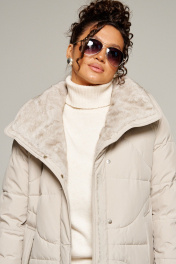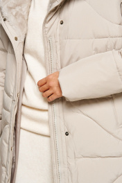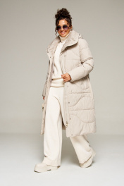 Зимнее, стеганое пальто прямого силуэта для ценителей стиля и практичности. Это отличное сочетание современных материалов и точного кроя. Лёгкое, удобное и классическое пальто подходит для холодных дней, обеспечивая тепло и комфорт в холодную погоду. Идеально сочетает в себе сдержанность и расслабленность, универсальность и гармоничность. Пальто выполнено из прочной, влагостойкой и приятной на ощупь полиэстерной ткани; на синтетической подкладке. Утеплитель холлофайбер 250 г/м. кв. предназначен для использования изделия при температурном режиме от -10 до -25 градусов. Модель прямого силуэта, базового кроя; предназначена для повседневной носки. Перед с симметричными боковыми прорезными карманами с широкой обтачкой, фиксируемые на кнопку. Спинка цельнокроеная. Рукав длинный втачной двухшовный. По низу внутри рукава предусмотрена дополнительная вставка в виде притачной трикотажной манжеты. Воротник тип «апаш» с возможностью застегивания до верха. Внутренняя часть воротника обработана искусственным мехом «норка». Капюшон съемный (на кнопках) умеренного объема. По периметру капюшона протянут шнур в цвет изделия с декоративными металлическими фиксаторами. Застежка центральная на двустороннюю молнию от уровня груди до низа под ветрозащитной планкой и кнопки по краю борта. Низ изделия ровный. Подкладка гладкая с наличием внутреннего кармана слева. К изделию прилагается пояс-завязка.