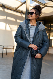 Зимнее, стеганое полупальто прямого силуэта для ценителей стиля и практичности. Это отличное сочетание современных материалов и точного кроя. Лёгкое, удобное и классическое пальто подходит для холодных дней, обеспечивая тепло и комфорт в холодную погоду. Идеально сочетает в себе сдержанность и расслабленность, универсальность и гармоничность. Пальто выполнено из прочной, влагостойкой и приятной на ощупь полиэстерной ткани; на синтетической подкладке. Утеплитель холлофайбер 250 г/м. кв. предназначен для использования изделия при температурном режиме от -10 до -25 градусов. Модель прямого силуэта, базового кроя; предназначена для повседневной носки. Перед с симметричными боковыми карманами с широким отворотом, фиксируемые на кнопку. С правой стороны на отвороте прикреплен отделочный элемент. Спинка с боковыми рельефами от проймы. Рукав длинный втачной двухшовный. По низу внутри рукава предусмотрена дополнительная вставка в виде притачной трикотажной манжеты. Капюшон умеренного объема. По периметру капюшона с внешней стороны выполнена оторочка из искусственного меха «овчина», переходящая на правый борт, которая создаёт дополнительное тепло и защиту от ветра и холода. Застежка центральная на двустороннюю молнию от верха до низа и кнопки. Под капюшоном спереди настрочен дополнительный элемент застежки из экокожи. Низ изделия ровный. Подкладка гладкая с наличием внутреннего кармана слева.