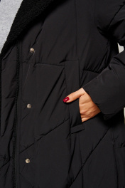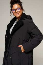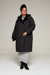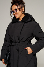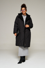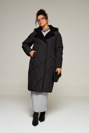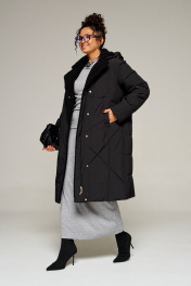 Зимнее, стеганое пальто прямого силуэта для ценителей стиля и практичности. Это отличное сочетание современных материалов и точного кроя. Лёгкое, удобное и классическое пальто подходит для холодных дней, обеспечивая тепло и комфорт в холодную погоду. Идеально сочетает в себе сдержанность и расслабленность, универсальность и гармоничность. Пальто выполнено из прочной, влагостойкой и приятной на ощупь полиэстерной ткани; на синтетической подкладке. Утеплитель холлофайбер 250 г/м. кв. предназначен для использования изделия при температурном режиме от -10 до -25 градусов. Модель прямого силуэта, с удлиненной линией плеча; предназначена для повседневной носки. Перед с симметричными боковыми прорезными карманами с широкой обтачкой, фиксируемые на кнопку. Спинка цельнокроеная. Рукав длинный втачной двухшовный. По низу внутри рукава предусмотрена дополнительная вставка в виде притачной трикотажной манжеты. Воротник пиджачного типа с возможностью застегивания до верха. Внутренняя часть воротника, борта и лацканы обработаны искусственным мехом «овчина». Капюшон съемный (на кнопках) умеренного объема. По периметру капюшона протянут шнур в цвет изделия с декоративными металлическими фиксаторами. Застежка центральная на двустороннюю молнию от уровня груди до низа и кнопки. Низ изделия ровный. Подкладка гладкая с наличием внутреннего кармана слева. К изделию прилагается пояс-завязка.
