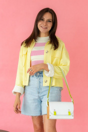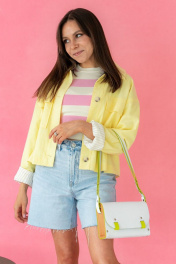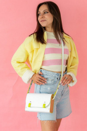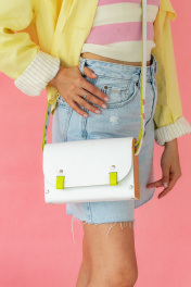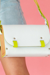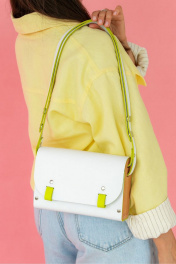""AELITA WHITE NEON"" – это тренд 2024года, уникальная женская сумка белого цвета с неоновыми вставками и деревянными боковинами через плечо от бренда Because Bags. Она сочетает в себе изысканность, стиль и необычные деревянные вставки по бокам, что делает ее идеальным выбором для любителей эксклюзивных аксессуаров. Сумка ""Аэлита"" изготовлена из высококачественной натуральной кожи белого цвета, что придает ей элегантный и роскошный вид. Каждая деталь сумки тщательно изготовлена с учетом качества и долговечности. Боковины сумки выполнены из прочного бука и покрыты маслом, что добавляет им дополнительную прочность и элегантность. Сумка ""Аэлита"" обладает одним большим отделением, где легко организовать все необходимые вещи. Регулируемый ремешок сумки позволяет легко изменять его длину в диапазоне от 65 см до 115 см, что позволяет носить сумку как через плечо, так и в стиле кросс-боди, подстраивая ее под индивидуальные предпочтения и комфорт. Застегивание сумки осуществляется с помощью двух магнитных кнопок, обеспечивающих надежное закрывание и открытие сумки. Мы гордимся тем, что все наши сумки производятся в Беларуси, и мы уделяем особое внимание качеству и деталям. Каждая сумка тщательно проверяется перед отправкой, чтобы уверенно предоставить вам стильный и надежный аксессуар. Если вы ищете необычную и элегантную белую сумку с деревянными вставками, ""Аэлита"" от Because Bags – идеальный выбор. Ее утонченный дизайн и высокое качество материалов сделают ее незаменимым элементом вашего гардероба. BECAUSE BAGS для тех, кто ценит стиль и качество! Размер 24*15*6