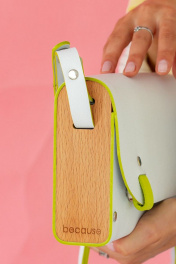 Кожаная сумка через плечо с деревянными вставками, белая Because AELITA_WHITE_NEON