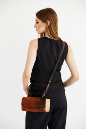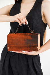 Сумка женская KVADRO-VINTAGE TERRACOT через плечо из натуральной кожи - это удобный и стильный аксессуар с ремешком из натуральной кожи изготовлена вручную. Сумки женские через плечо Because можно носить как кросс-боди , так и на плечо. В каждой нашей сумке используется только натуральное дерево Бук, что позволяет маленькой женской сумочке быть не только легкой но и вместительной. Размер 22*11*11 см. В женскую сумочку войдут самые необходимые вещи, телефон больших размеров, паспорт, очки, расческа, ключи и многое другое при этом ваши руки будут свободны. Простые формы и минимум декора. Качественная и натуральная кожа делает наши сумки тактильно приятными, дорогими и стильными. Ремешок из натуральной кожи регулируется от длинного 115 см до короткого 65 см, за счет перестегивания кнопок. Закрывается сумка на кобурную кнопку цвета античной латуни, что в совокупности с натуральными материалами придает ей оригинальный внешний вид и подчеркивает неординарный вкус обладателя данного аксессуара. Кожа и дерево надежно закреплены с помощью металлических заклепок. Этот аксессуар будет весьма уместно вручить в качестве оригинального подарка себе любимой или на любое торжество. Наша сумка подойдет под любые образы и мероприятия. Сумка выполнена по индивидуальным эскизам, с использованием качественных материалов, устойчивых к перепадам температур и механическим воздействиям. Высокое качество дерева и кожи и надежная фурнитура позволит не волноваться за внешний вид и дальнейшую эксплуатацию наших сумок. Внутри сумки одно большое отделение. Сумка Because идеально подходит на лето а так же как отличный аксессуар под вечернее платье. Универсальная кожаная сумка через плечо будет идеально сочетаться с любой формой одежды и станет прекрасным подарком для любимой мамы, подруги или подростка на день рождения. Также в коллекции есть более яркие модели. Каждый экземпляр ручной работы выполнен с любовью к женщинам и их нуждам. Эта красивая и удобная сумка станет отличным выбором для каждого дня и в любой ситуации. Лаконичная и стильная маленькая сумочка выполнена из качественной кожи, которая хорошо держит форму. В данной коллекции вы найдете маленькие и вместительные сумки, которые станут отличным выбором как для повседневного образа, так и в качестве вечернего клатча. Они также подходят для путешествий и учебы, офисной работы или прогулок с друзьями. Сумки через плечо снабжены ремнем, что позволяет носить их на руке или через плечо. BECAUSE BAGS для тех, кто ценит стиль и качество!