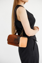 Коричневая кожаная сумка через плечо с деревянными вставками Because KVADRO-VINTAGE TERRACOT