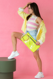 Сумка женская несессер LONG NEON через плечо из натуральной кожи - это удобный и стильный аксессуар . Держать клатч LONG от бренда BECAUSE BAGS руками, упорядочивая свои мысли и более не беспокоясь о том, какую позу принять. Главное- наша новая модель LONG позволяет принять выгодное положение, не пряча руки в карманы и не делая неловких движений-повесьте ее на плечо, наденьте ее как кросс -боди или держите ее за деревянную ручку-в любом случае-все взгляды будут прикованы к Вам.. Отличное решение использовать такой несессер как сумку, клатч, и таким образом сэкономить место в чемодане. Сумки женские через плечо Because bags можно носить как кросс-боди, на плечо, либо в руках. В сумке LONG боковина сумки и ручка выполнены из натурального дерева Бук. В сумочке имеется внутренний и внешний карман , выполненный из прозрачного материала, что облегчает процедуру поиска потерянных мелочей . В женскую сумочку войдут самые необходимые вещи и при этом ваши руки будут свободны. Закрывается сумка на молнию цвета серебра, что в совокупности с натуральными материалами придает ей оригинальный внешний вид и подчеркивает неординарный вкус обладателя данного аксессуара. Кожа и дерево надежно закреплены с помощью металлических заклепок. Сумка выполнена по индивидуальным эскизам. Внутри сумки одно большое отделение, есть карман для документов или мелочей. Сумка Because LONG - Аксессуар для смелых, стильных и уверенных в себе женщин. Универсальная кожаная сумка через плечо будет идеально сочетаться с любой формой одежды и станет прекрасным подарком. Каждый экземпляр ручной работы выполнен с любовью к женщинам. Эта красивая и удобная сумка станет отличным выбором для каждого дня и в любой ситуации. BECAUSE BAGS для тех, кто ценит стиль и качество. Размер 45*21*7