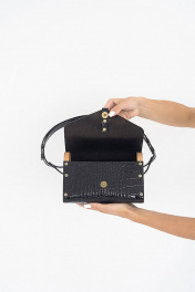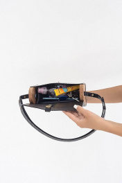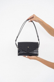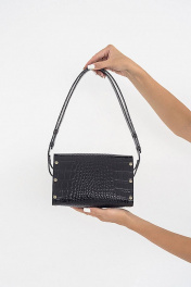 Черная кожаная сумка тарелка с деревянными вставками Because MISHEL BLACK_CROCO