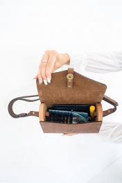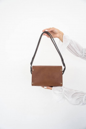 Сумка Мишель изготовлена вручную из плотной натуральной кожи и элементов массива бука. Размер 22*15*10 см . Несмотря на компактный размер очень вместительная. Простые формы и минимум декора. Деревянные вставки из массива бука. Качественная и плотная ременная кожа, хорошо держит форму изделия. Ручка регулируется от длинной 115см до короткой 65 за счет перестёгивания кнопок. Закрывается сумка на металлическую кнопку цвета античной латуни, что в совокупности с натуральными материалами придает ему оригинальный внешний вид и подчеркивает неординарный вкус обладателя данного аксессуара. Внутри сумки одно большое отделение Кожа и дерево надежно закреплены с помощью металлических заклепок.Этот аксессуар будет весьма уместно вручить в качестве оригинального подарка себе любимой или на любое торжество . BECAUSE BAGS для тех, кто ценит стиль и качество!