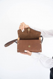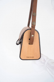Кожаная сумка Мишель из натуральной кожи и дерева, 22х15х10 см Because MISHEL BROWN