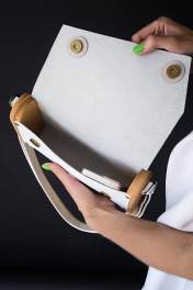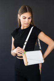 Сумка ВИОЛА из натуральной кожи с деревом, регулируемый ремешок Because VIOLA WHITE