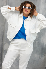 Стильный джинсовый бомбер свободного кроя - абсолютный мастхэв этого лета. Выполнен из плотного благородного, хлопкового джинса со стрейчем в крупный рубчик, который отлично держит форму, за счёт чего скрывает неровности фигуры. Универсальная модель в стиле кэжуал дополнит и освежит любой образ. Бомбер выполнен в стиле оверсайз, нормальной длины. Современная молодёжная модель прекрасно сочетается с платьем, джинсами, шортами, идеальна на каждый день! Горловина полукруглой формы, обработана втачным воротником. Функцию застёжки передней части, выполняют стильные металлические пуговицы. Спинка состоит из нескольких разрезных деталей. Рукав втачной, со спущенной линией плеча и притачной манжетой, имеющей застёжку на пуговицу. По переду снизу - притачные объёмные карманы с клапаном и отрезной частью по диагонали. Обтачка низа присборена эластичной резинкой. Бомбер легко сочетается с любыми аксессуарами и различной обувью. В комплект к бомберу можно приобрести брюки бренда BegiModa. Артикул брюк: 6052. длина по центру спинки: 55 см длина рукава от горловины: 74 см Обхват груди: 122см/48р; 126см/50р; 130см/52р; 134см/54р; 138см/56р; 142см/58р; 146см/60р; 150см/62р. Рост фотомодели 174 см, размер одежды на фото 52.