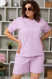 Розовый летний комплект футболка и шорты из хлопка BegiModa 3039 лаванда