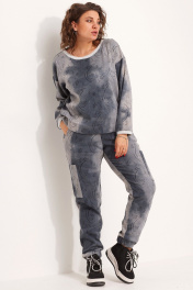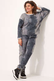 Эксклюзивный комплект из брюк и свитшота с эффектом потертости из ткани с натуральным составом BegiModa 3080 синий дым