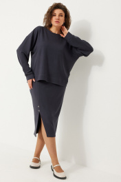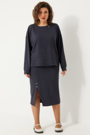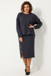 Комплект из трикотажного свитшота и юбки с металлическими элементами BegiModa 3086 графит