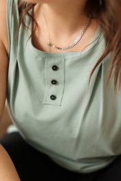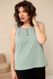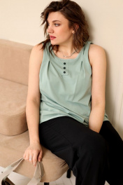 Блуза-топ свободного кроя, слегка расклешённая к низу. Выполнена из трикотажной хлопковой ткани. Незаменимая вещь для жаркой погоды! Блуза идеально подходит для создания многослойных образов. Длинна изделия позволяет менять образы, заправлять или носить на выпуск. Увеличенный объём проймы придаст Вам лёгкости и комфорта. На передней части настрочная планка с пуговками, а так же декоративные защипы в качестве декора. Широкая бретель позволяет скрыть нижнее бельё. Размерный ряд: 48; 50; 52; 54; 56; 58; 60; 62; Рост: 170 см Для того, чтобы правильно подобрать свой размер, необходимо ваш замер объёма груди разделить на 2. (например, объём груди 104:2=52 размер). Замеры в готовом изделии: Длина от плеча: 63 см Обхват груди: 100см/48р; 104см/50р; 108см/52р; 112см/54р; 116см/56р; 120см/58р; 124см/60р; 128см/62р. Рост фотомодели 174 см, размер одежды на фото 52.