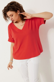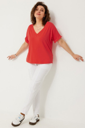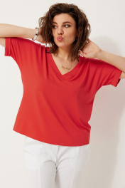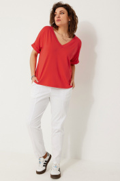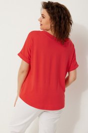 Полуприлегающая трикотажная блуза с коротким рукавом для стильных лугов BegiModa 4120 коралл