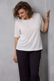 Хотите добавить в свой гардероб новинку, которая будет одновременно комфортной и стильной? Эта трикотажная блуза с коротким рукавом – именно то, что Вам нужно! Нежный трикотаж окутает Вас мягкостью, а лаконичный крой с коротким рукавом подчеркнет вашу женственность. Модель станет универсальной основой для множества образов – от повседневных до более элегантных. Она так приятна к телу, что Вы не захотите ее снимать! Блуза полуприлегающего кроя с горловиной полукруглой формы, обработанной обтачкой с открытым срезом. Линия плеча слегка спущена. Рукав короткий, втачной, на манжете из основного материала. Низ изделия обработан декоративной плоскошовной строчкой. На фото представлены брюки арт. 6079. Для того, чтобы правильно подобрать свой размер, необходимо ваш замер объёма груди разделить на 2. (например, объём груди 104:2=52 размер). длина по спинке: 60 см длина рукава от горловины: 36 см Обхват груди: 106см/48р; 110см/50р; 114см/52р; 118см/54р; 122см/56р; 126см/58р; 130см/60р; 134см/62р. Рост фотомодели 174 см, размер одежды на фото 52. При подборе правильного размера, учитывайте, что для комфортной посадки у готового изделия должен быть запас на свободное прилегание. Все замеры выполнены в готовом изделии. Допуск расхождения в замерах +-2 см.