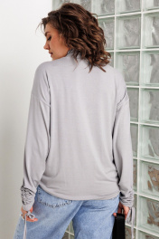 Трикотажный лонгслив с высоким горлом и актуальными драпировками по линии низа рукава и переду, которые не только регулируют длину лонгслива и рукава, но и позволяют моделировать фигуру, скрывая животик. Базовая модель в пепельном оттенке прекрасно впишется в гардероб как самостоятельный элемент, так и как первый слой под жакет. Крой прямой, линия рукава спущена. Низ обработан подгибкой. Для того, чтобы правильно подобрать свой размер, необходимо ваш замер объёма груди разделить на 2. (например, объём груди 104:2=52 размер). Блуза: длина по спинке: 65 см длина рукава от горловины: 79см Обхват груди: 110 см/48р; 114см/50р; 118 см/52р; 122 см/54р; 126 см/56р; 130 см/58р; 134 см/60р; 138 см/62р. Рост фотомодели 174 см, размер одежды на фото 52. При подборе правильного размера, учитывайте, что для комфортной посадки у готового изделия должен быть запас на свободное прилегание. Все замеры выполнены в готовом изделии. Допуск расхождения в замерах +-2 см.