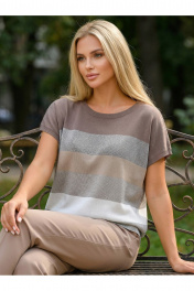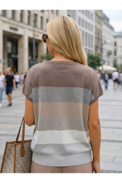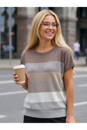 Женский джемпер с коротким рукавом— стильный и красивый вариант для создания актуального образа 2026. Эта нарядная футболка поло выполнена из мягкой вискозы, приятной к телу. Трикотажная структура делает материал легким и тонким, идеально подходит на весну и летний период. Модель представлена как свободная и оверсайз, также доступна укороченная версия — тренд последних сезонов. Подходит для девушек разного роста, включая форматы для полных и беременных. Доступна линейка размеров плюс size и решения для больших параметров. Джемпер с люрексом выполнен в дизайне в полоску, что эстетично подчеркивает модный формат old money. Светлая палитра делает изделие универсальным на каждый день, а также в офис, на работу или деловую встречу. Это праздничная блузка, которая легко вписывается в гардероб современной девушки.