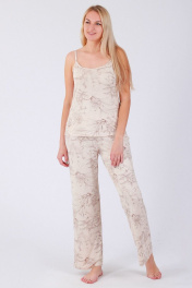 Трикотажный брючный комплект, топ на бретелях с регуляторами. Брюки прямые, пояс на широкой резинке.