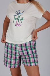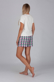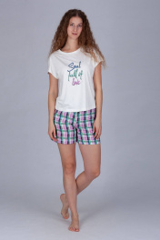 Красивый комплект с шортами выполнен в комбинировании трикотажной футболки и шорт из набивного текстиля (вискоза 100%)