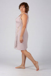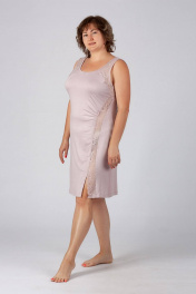 Хит продаж! Красивая сорочка полуприлегающего силуэта выполнена из трикотажного вискозного полотна. Эффектная кружевная вставка от линии груди до низа изделия с небольшим разрезом внизу, зрительно вытягивает силуэт. Кружевные вставки на плечах придают соблазнительный и привлекательный образ. Длина сорочки на рост 164 на уровне колен.