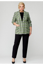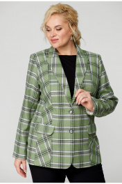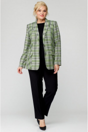 Демисезонный жакет из хлопка удлиненный с рельефами БелЭльСтиль 203-2_83_22 зеленая клетка
