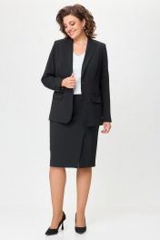Комплект жакет и юбка в стиле деловой классики БелЭльСтиль 205-2_80_22+603-2_48_22 черный_однотон
