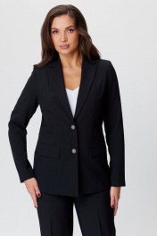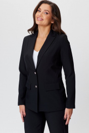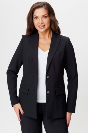 Жакет из экокожи черный удлиненный в деловом стиле БелЭльСтиль 412-3_03_22 черный_однотон