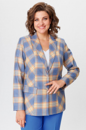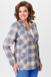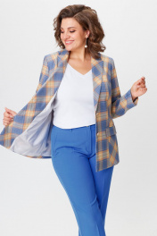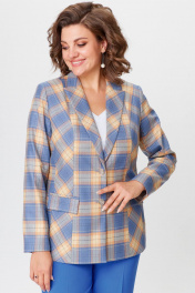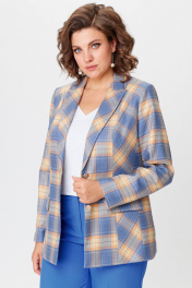 Жакет удлиненный из экокожи голубой для делового стиля БелЭльСтиль 412-3_03_22 голубая_клетка