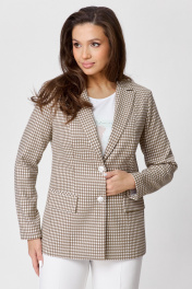 Комплект женский-двойка, из текстильной ткани, жакет удлиненный, полуприлегающего силуэта с центральной бортовой застежкой на пуговицы до линии перегиба лацкана. Спереди рельефные швы от плечевого шва, отрезной бочок и карман с клапаном. Спинка с рельефами от плечевого шва. Рукав втачной, двухшовный. Воротник пиджачного типа. Жакет на подкладке, длина по спинке 67 см, длина рукава 62 см. Брюки прямые, классические, с заутюженными стрелками, по переду обработаны карманы с отрезным бочком, застежка на тесьму-молнию и 1 пуговицу. На задних половинках обработаны вытачки и имитация карманов с листочкой, пояс в брюках притачной. Длина брюк от талии по боковому шву 103 см. Рекомендуем к комплекту блузу 479.