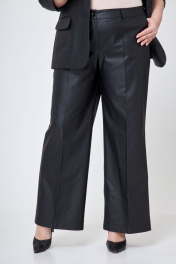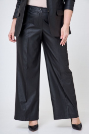 Демисезонные брюки палаццо из экокожи с карманами БелЭльСтиль 601-2_88_22 черная экокожа