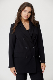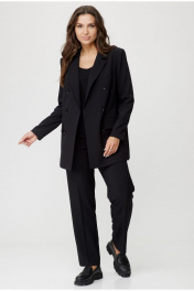 Классический комплект жакет и брюки из хлопка с карманами БелЭльСтиль 848-2_81_22+596-2_79_22 черный однотон
