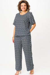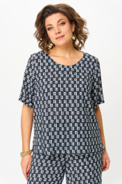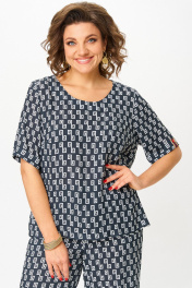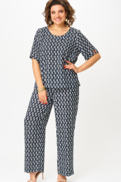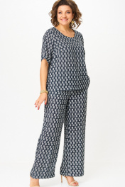 Блуза, брюки БелЭльСтиль 875.3 _22_22+605-2_73_22 сине-белый_принт