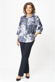 Блуза, брюки БелЭльСтиль 877-3_26_22+596-2_79_22 синий принт+синий