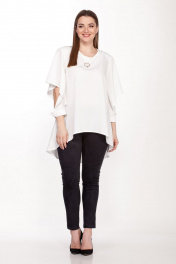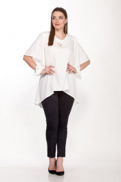 Демисезонный комплект блузка и брюки из текстиля с эластаном Belinga 2091 молоко