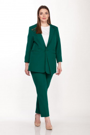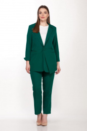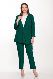 Комплект женский двухпредметный состоит из жакета и брюк. Жакет полуприлегающего силуэта выполнен из плотной костюмной ткани с добавлением эластана на подкладке,застежка центрально- бортовая, застегивается на две петли и пуговицы, воротник втачной с отложным лацканом, рукав втачной 3/4 двухшовный с разрезом, на полочках функциональные карманы с листочкой, на одной стороне обработан накладной карман с отлетной деталью. Брюки классические выполнены из костюмной ткани с высокой посадкой. Пояс без резинки, с застежкой молнией на пуговицу. В боковых швах карманы с листочкой. Длина брюк 103 см.