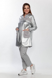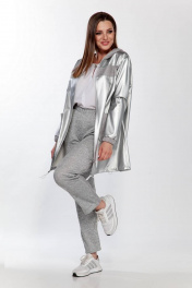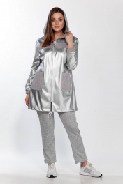 Брюки и куртка из экокожи и трикотажа демисезонный комплект Belinga 2185 серебро/серый