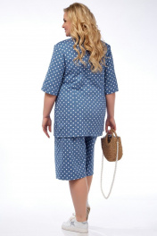 Костюм женский свободного силуэта.Состоит из блузки и шорт.Выполнен из хлопковой ткани.Блузка с центрально-бортовой застежкой на петли и пуговицы,воротник втачной на стойке,одна из полочек выполнена из контрастной ткани и украшена карманом,в боковых швах разрезы ,рукав короткий втачной .Шорты свободные,в боковых швах карманы,пояс на резинке.