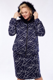 Костюм женский трикотажный,двухпредметный. Состоит из кардигана и юбки. Кардиган на подкладке с функциональными карманами по переду, застежка молния , по низу изделия кулиска со шнурком, капюшон украшен боа. Юбка полуприлегающего силуэта на трикотажной подкладке, пояс на резинке , в боковом шве разрез.