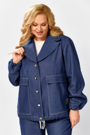 Костюм женский двухпредметный . Жакет с отложным воротником и центральнобортовой застежкой на петли и пуговицы.Рукав втачной с манжетом . Низ с кулисой.Брюки с карманами в боковых швах и резинкой по талии.