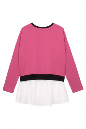 Джемпер для девочки свободного силуэта с круглым вырезом горловины и длинным рукавом дополнен баской в виде юбки и стильным принтом с надписями и смайликами. Трикотажная ткань гарантирует износостойкость изделия и приятные тактильные ощущения.
