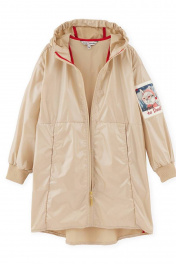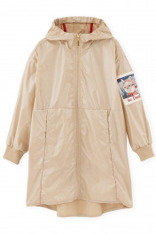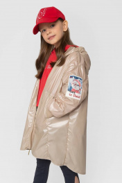 Стильный плащ-пыльник для девочки. Модель в стильном оттенке "холодный кофе" декорирована вышивкой и цифровой печатью. Плащ дополнен боковыми карманами.