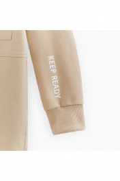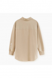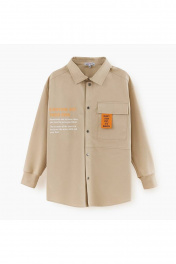 Бежевый жакет-рубашка для мальчика. Модель прямого силуэта с мягкими манжетами на рукавах. Изделие из комбинированного материала (твил + футер) с браш-эффектом, что делает его мягким и износостойким.