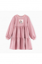 Розовое платье для девочки с романтичными рукавами и дизайнерской печатью Bell Bimbo 243007 розовый