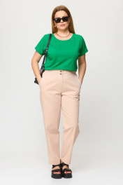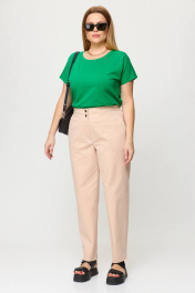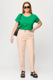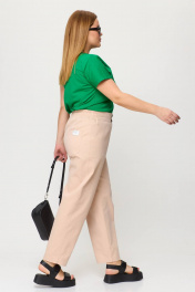 Брюки из джинсовой тонкой ткани, свободного кроя, слегка зауженного к низу, с высокой посадкой. Пояс шириной 5 см., по спинке расположена резинка, на передних половинках имеются карманы. На задних половинках накладные карманы с декором. 50-60 размеры Длина по боковому шву 100(+-1 см). По шаговому шву 72 см.(+-1 см). Высота посадки по переду 33 см.(+-1 см). Рекомендации по уходу: Ручная или машинная стирка до 30 Химчистка Отжим до 800 оборотов Гладить на средних температурах