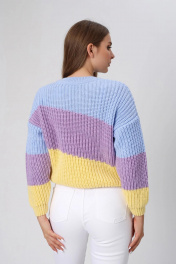 Женский джемпер в ярких тонах поможет Вам разбавить серые будни новыми красками. Он освежит Ваш образ и добавит радости и оптимизма в Ваш день. Стильный свитер беспрецедентный хит продаж. Невероятное сочетание цветов делают его универсальным, который идеально подойдёт на любой случай жизни. Женская вязаная кофта станет незаменимой частью Вашего образа как для повседневного гардероба, так и для свидания. Она подчеркнет все Ваши достоинства. Джемпер подходит на рост 170 см. Идет в размерах M/L(46,48,50),XS/S(42,44,46) Размерный ряд XS/S Длина изделия (расстояние от высшей точки плечевого шва до низа)-55см Ширина по линии груди-54см Ширина по низу изделия -30см Длина рукава -40 см Размерный ряд M/L Длина изделия (расстояние от высшей точки плечевого шва до низа)-57см Ширина по линии груди-58см Ширина по низу изделия -34см Длина рукава -41см