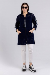Демисезонный женский жакет с капюшоном и карманами BONADI М-1509 синий